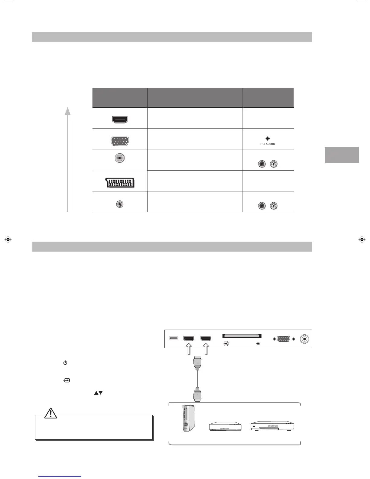 • When you connect to the output of an HD ready player (blu-ray disc player, game console, set-top box or computer) switch to