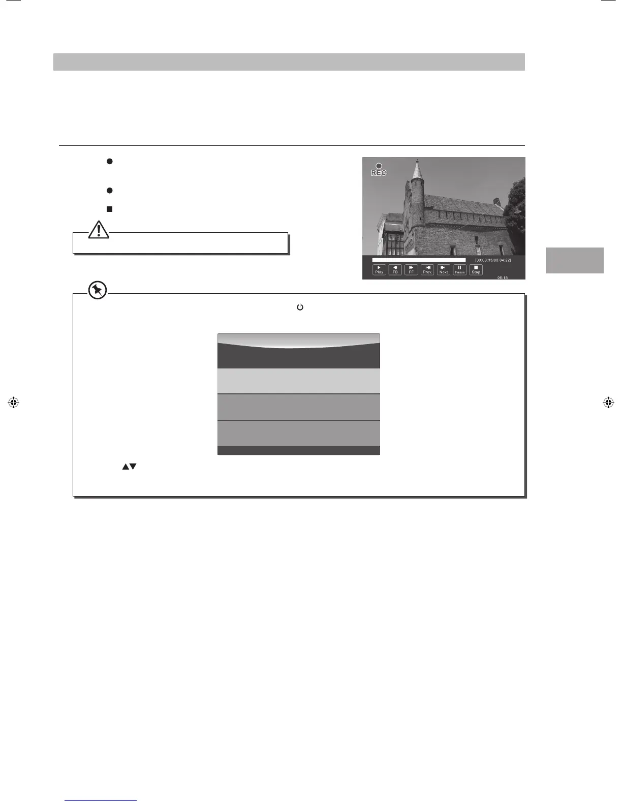 If you want to turn off your TV during recording, press the button on the right side panel of the TV or on the remote