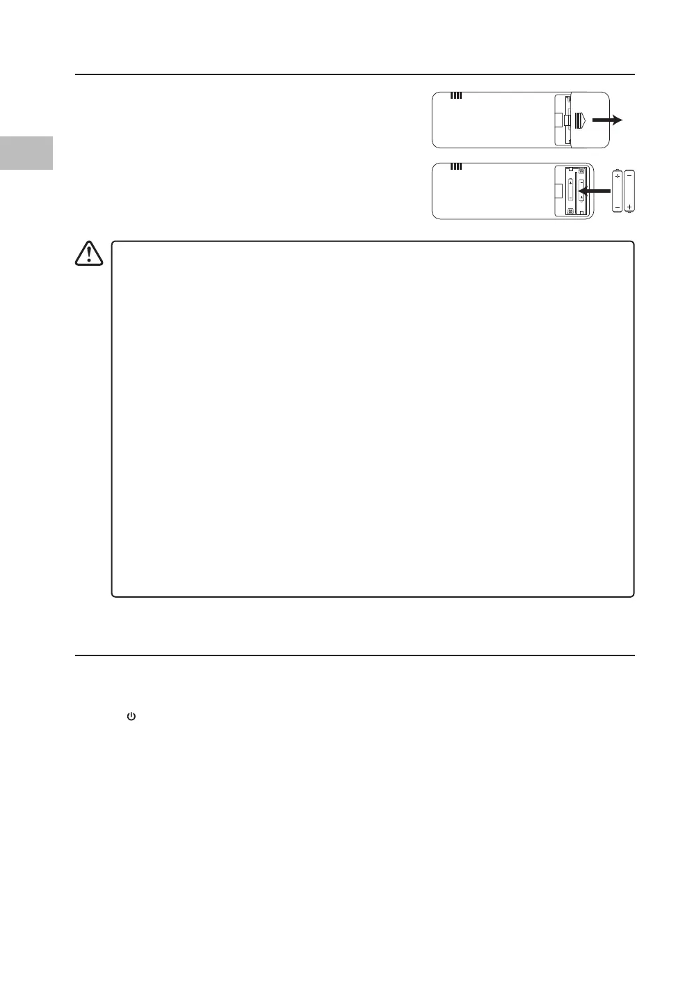 • Remove the battery from the remote control when not in use for a long period of