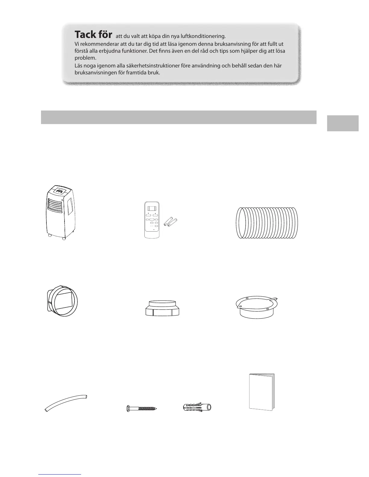 Ta ut alla delar ur förpackningen. Behåll förpackningsmaterialet. Om förpackningen kastas ska du
