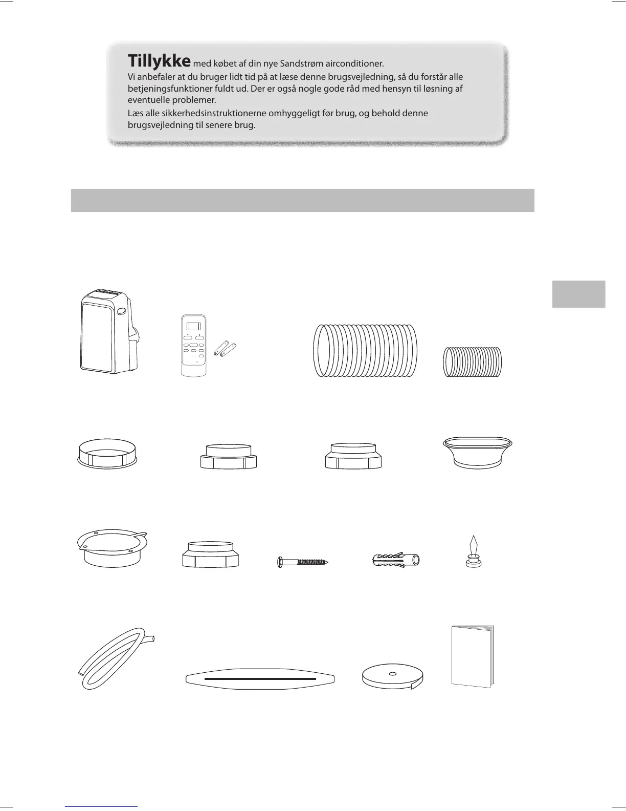 Tillykke med købet af din nye Sandstrøm airconditioner.