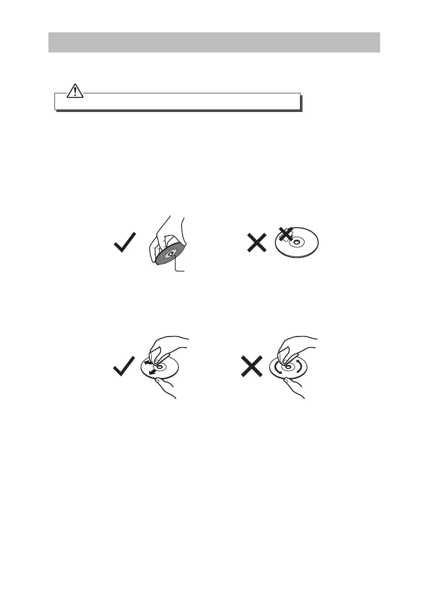 • Storing discs vertically in a case, stacking discs or placing objects on discs outside of