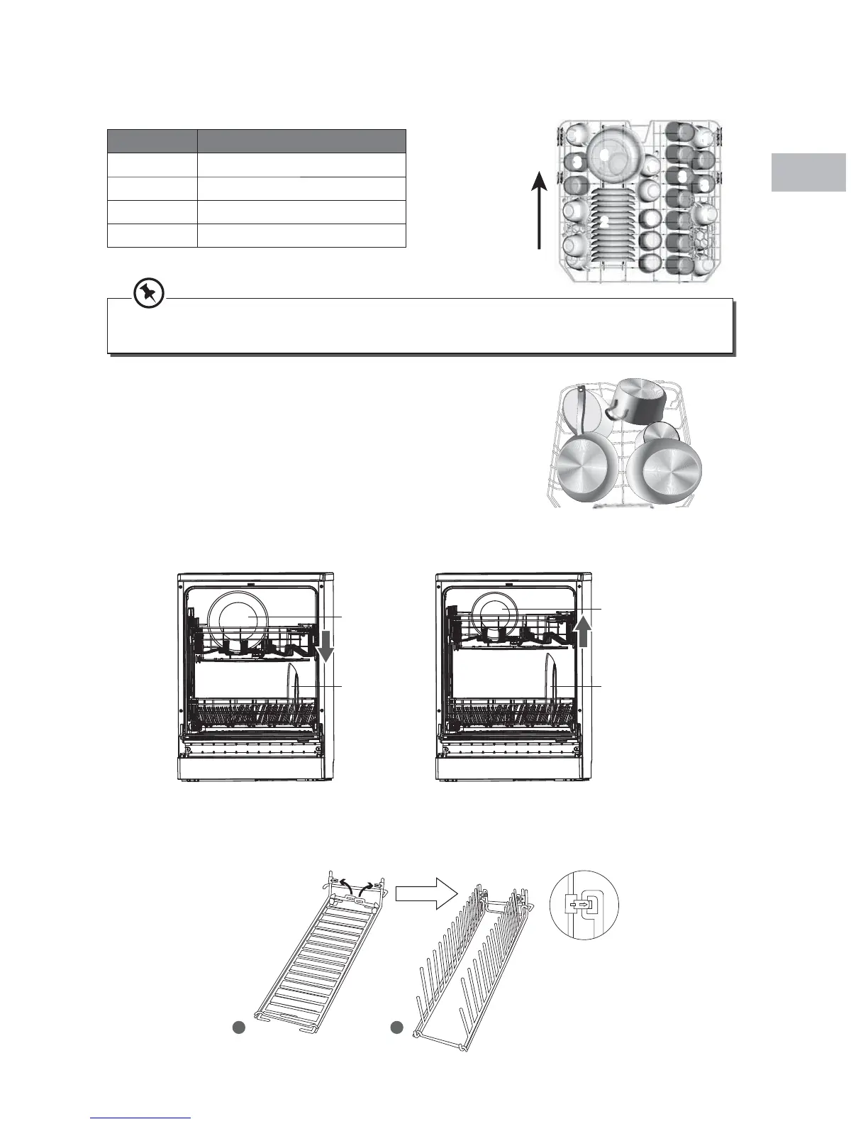 If required, the upper basket should be adjusted to create more space for large plates on the