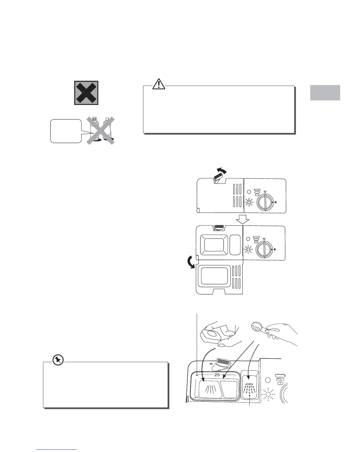 forvaskemiddelrommet. Brukes oppvasktabletter,