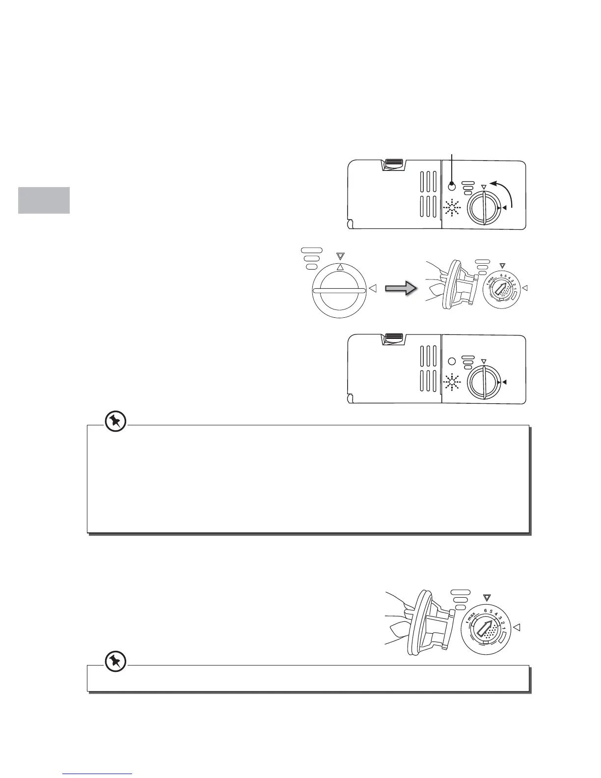 Sköljmedelsbehållaren har sex inställningar. Både den