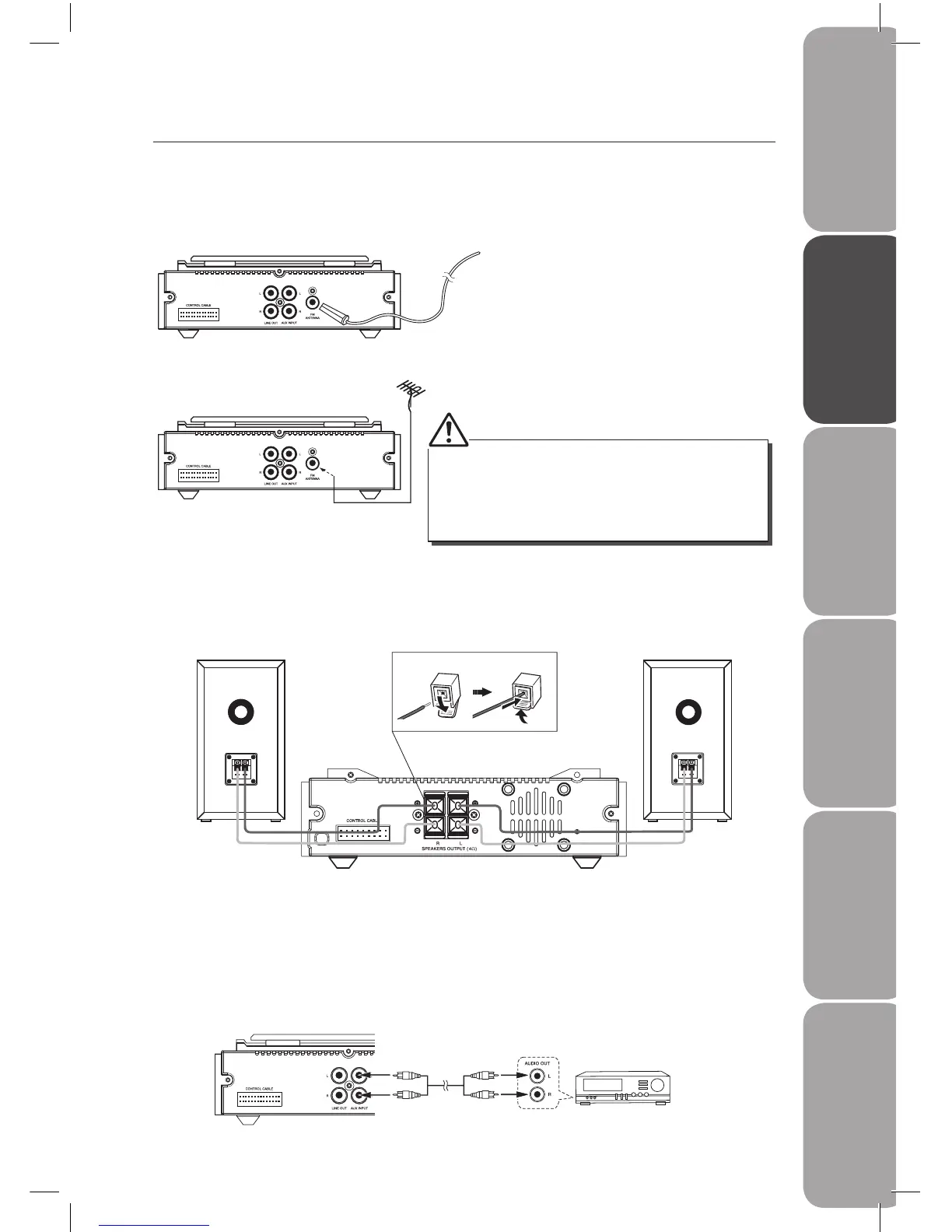 the auxiliary equipment using RCA stereo audio cables (not included) as illustrated below.