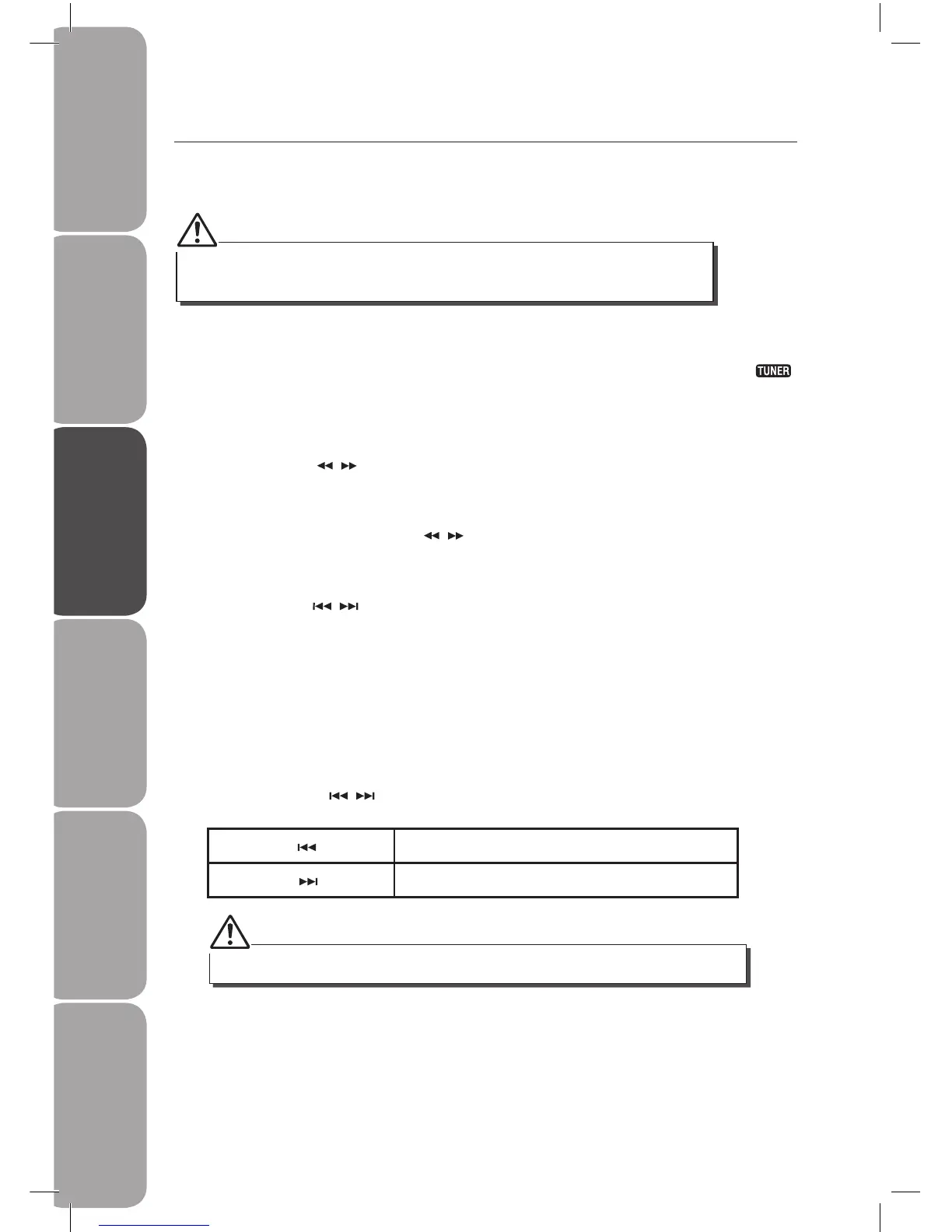 Press the TUNING / button repeatedly to change the frequency until you nd the