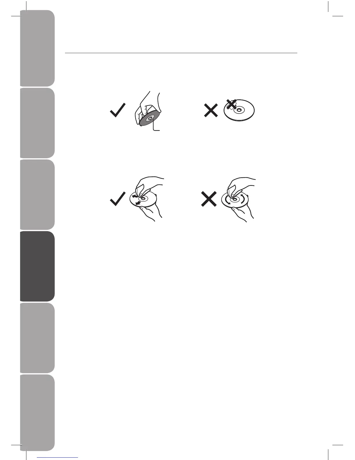 • Storing discs vertically in a case, stacking discs or placing objects on discs outside of their