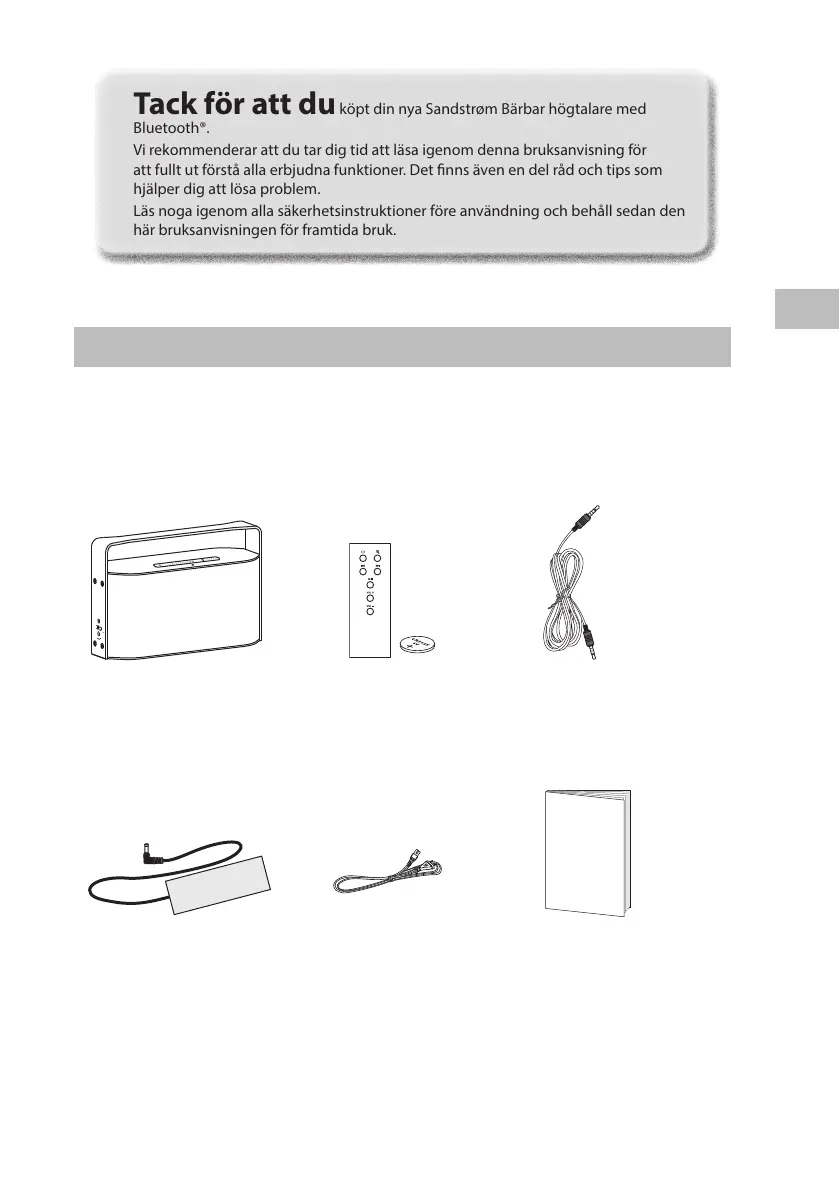 Tack för att du köpt din nya Sandstrøm Bärbar högtalare med