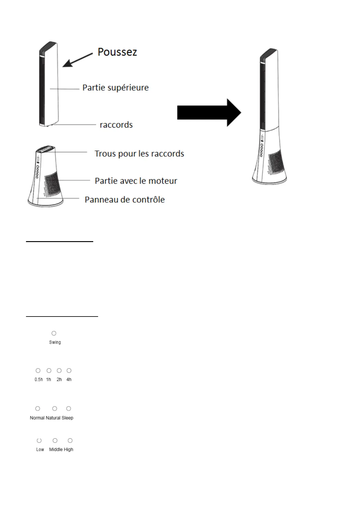 Le ventilateur a trois vitesses (lente =low, moyenne=middle et rapide =high), trois