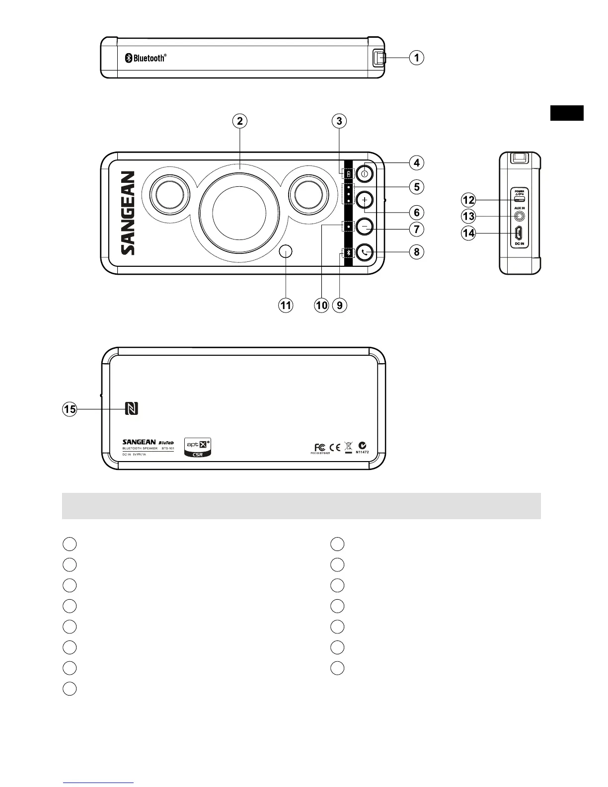 Sangean BTS-101 - Control Panel Overview; Power Button; Volume Up Button; Volume Down Button