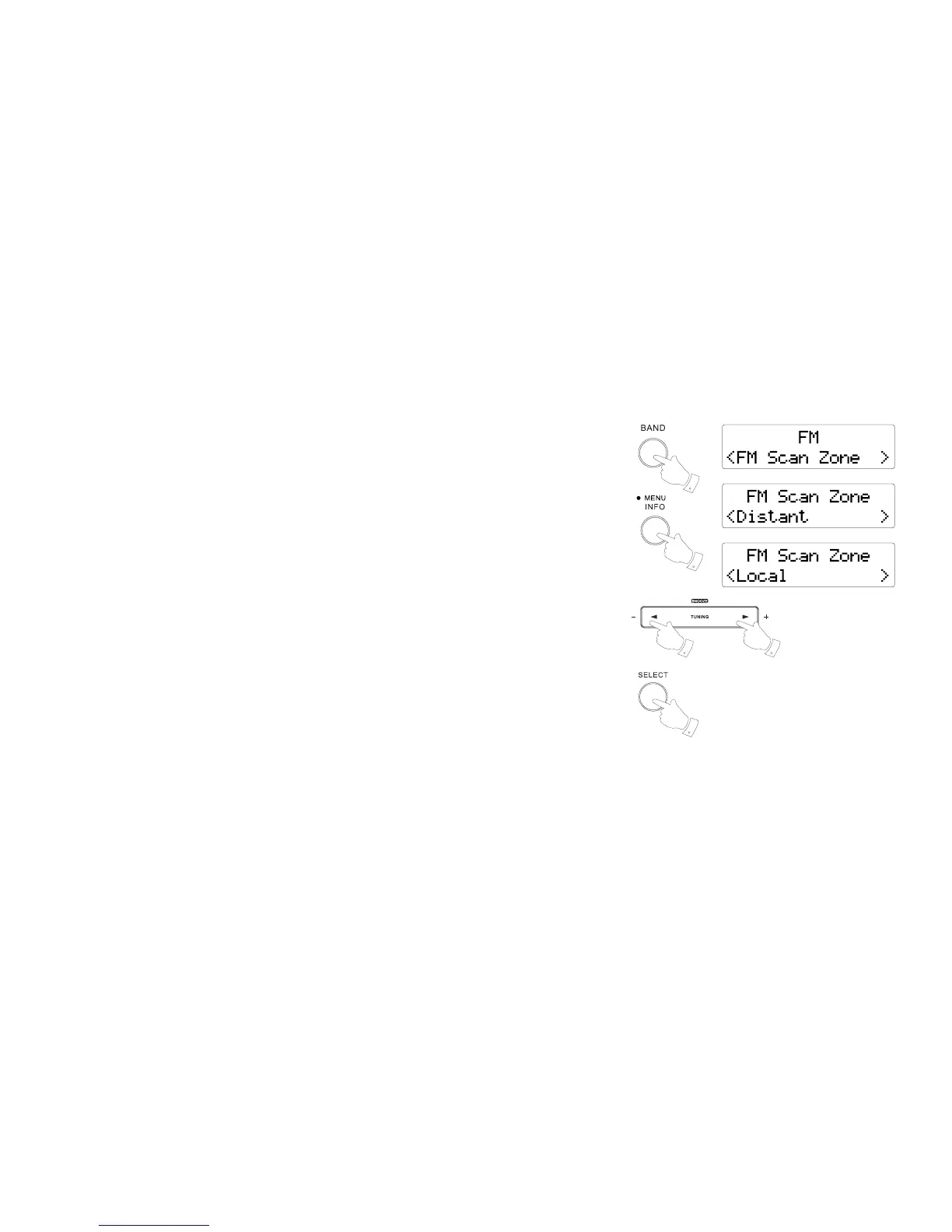 until 'FM scan zone' is highlighted and then press the Select button to enter the scan adjustment