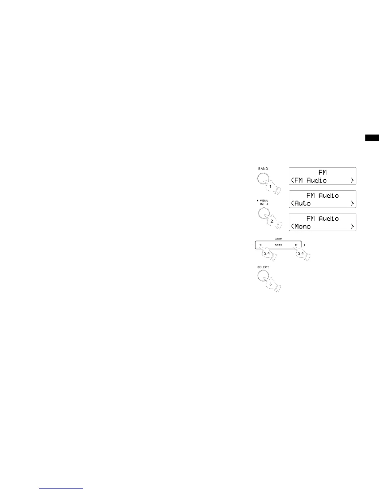 4. To return to Auto (stereo) mode press and release the Tuning up / down button again, so that