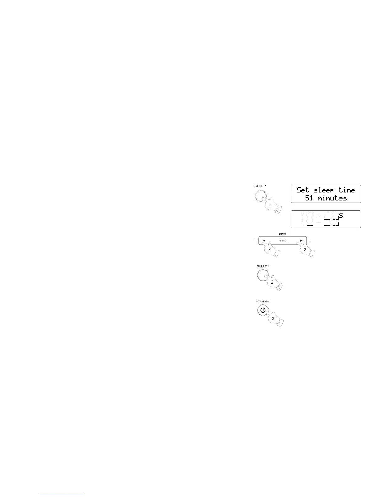 2. Repeatedly press the Tuning up/ down button to select the desired sleep time. The options are