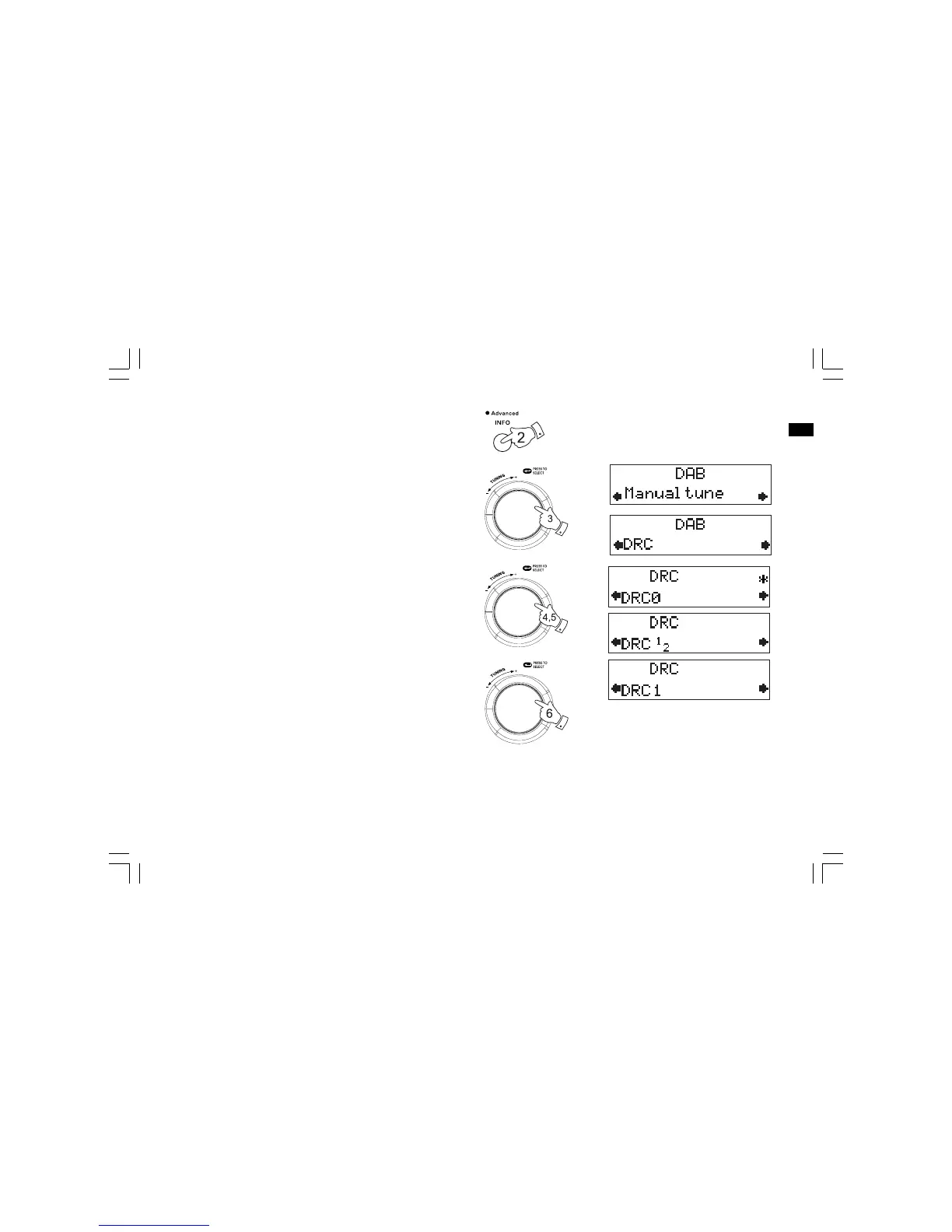 3. Rotate the Tuning control until the display show “DRC“.