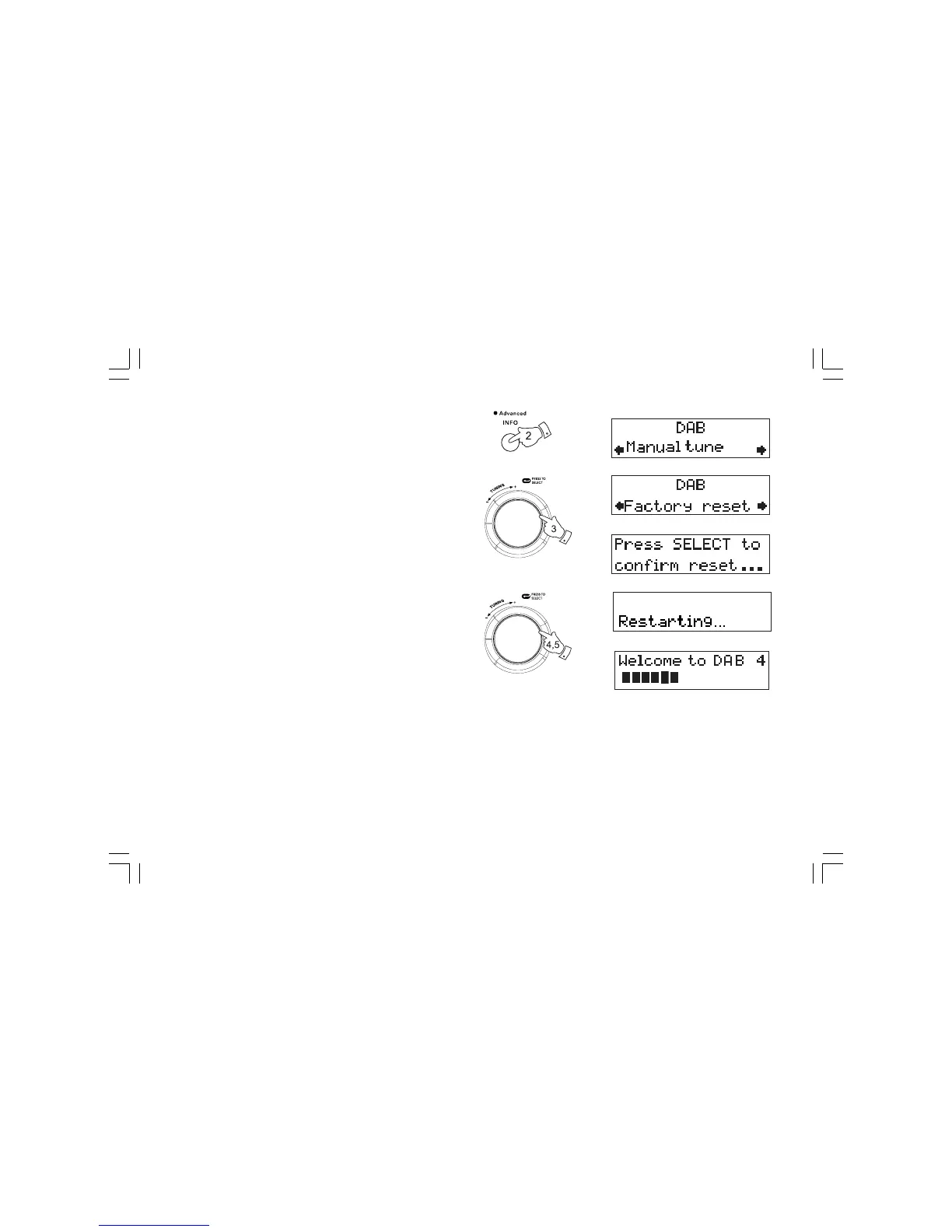 5. Press the Tuning control to confirm. A full reset will be performs and