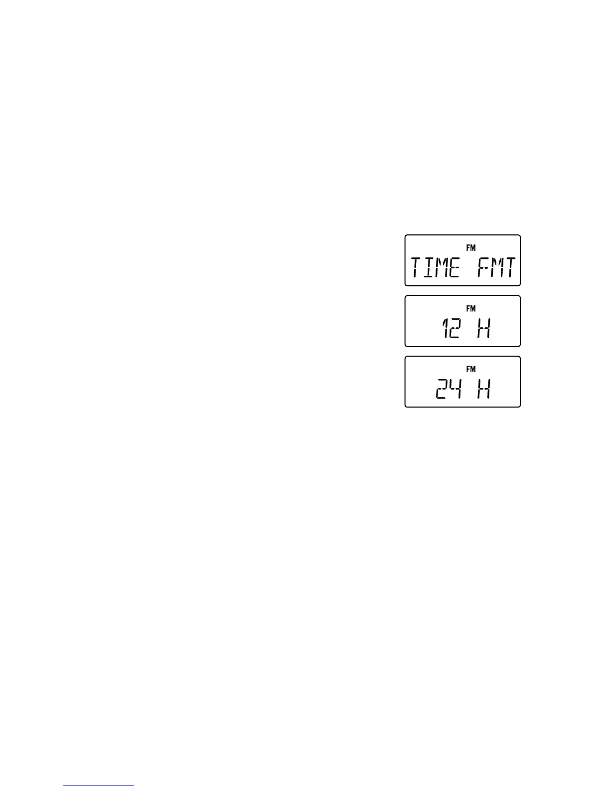 2. Rotate the Tuning control until “TIME FMT” shows on the display. Press the Tuning control to