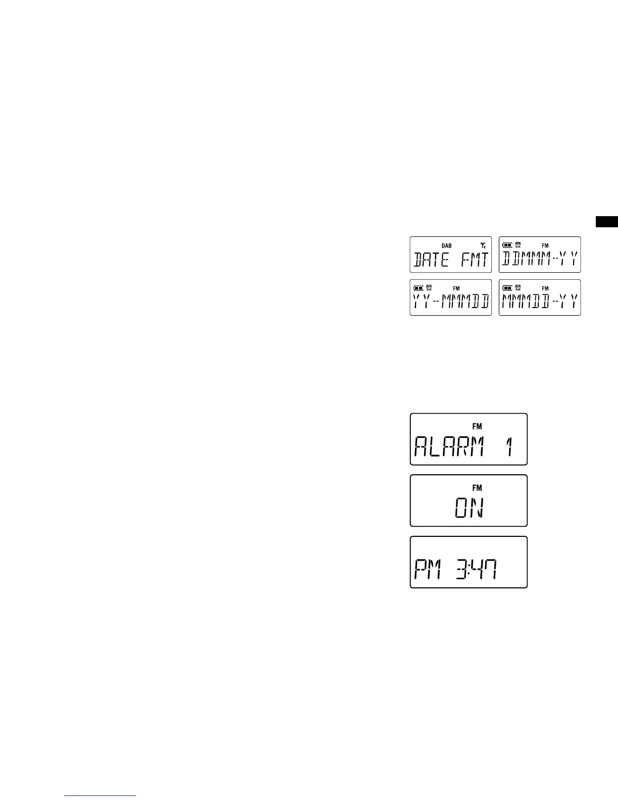 The alarms may be set while the unit is in standby mode or while playing. The alarm clock setting