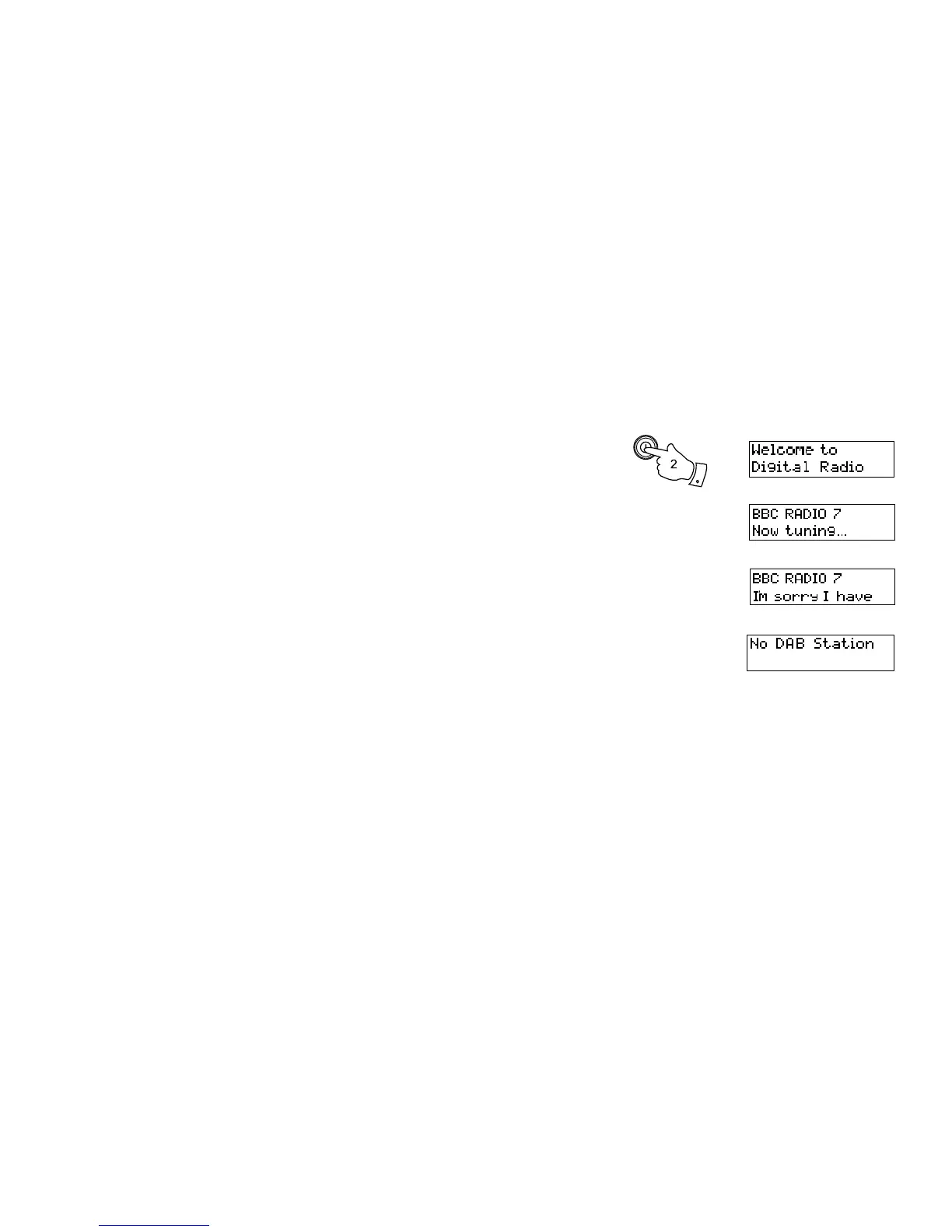 out. The display will show “Welcome to DAB”. If the radio has been used before the last
