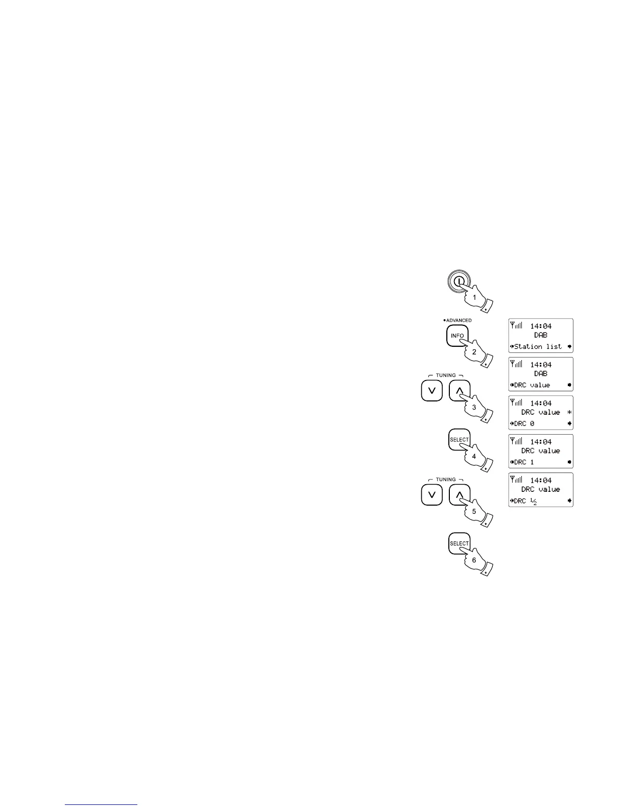 5. Pulse los botones Tuning Up/Down para seleccionar el ajuste DRC deseado (el valor