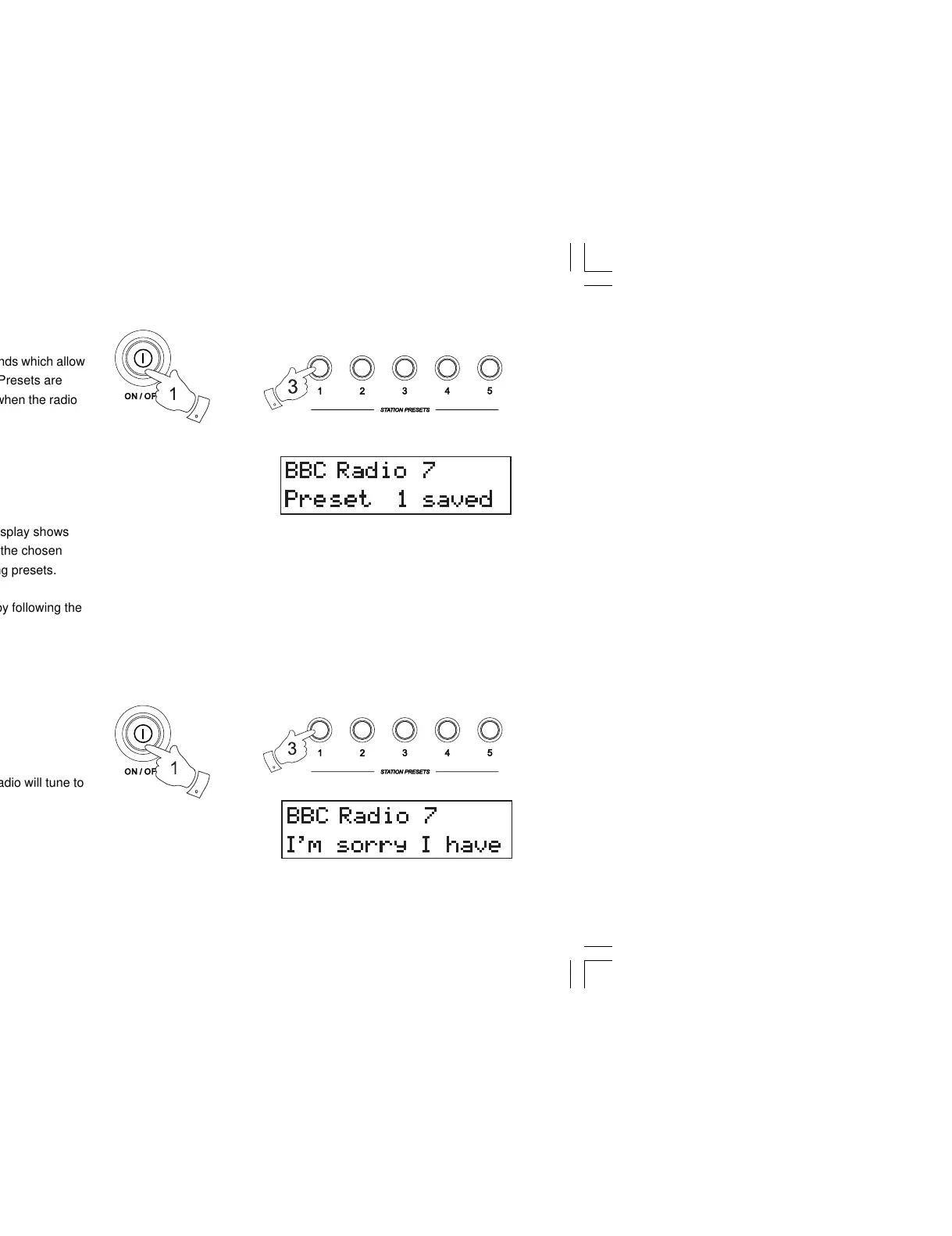 e.g. Preset 1 saved. The station will be stored under the chosen
