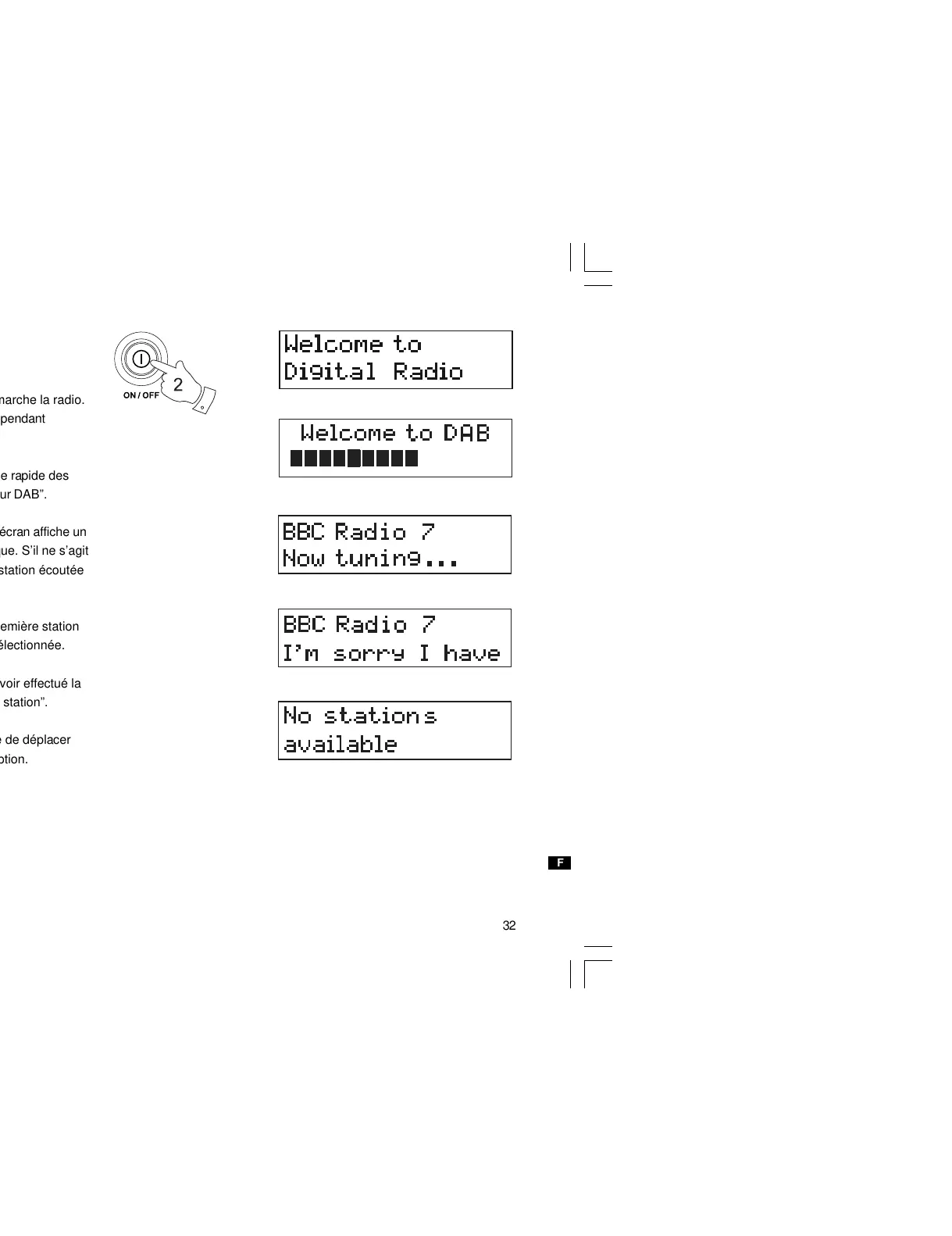 canaux III DAB se lance. L’écran affiche “Bienvenue sur DAB”.