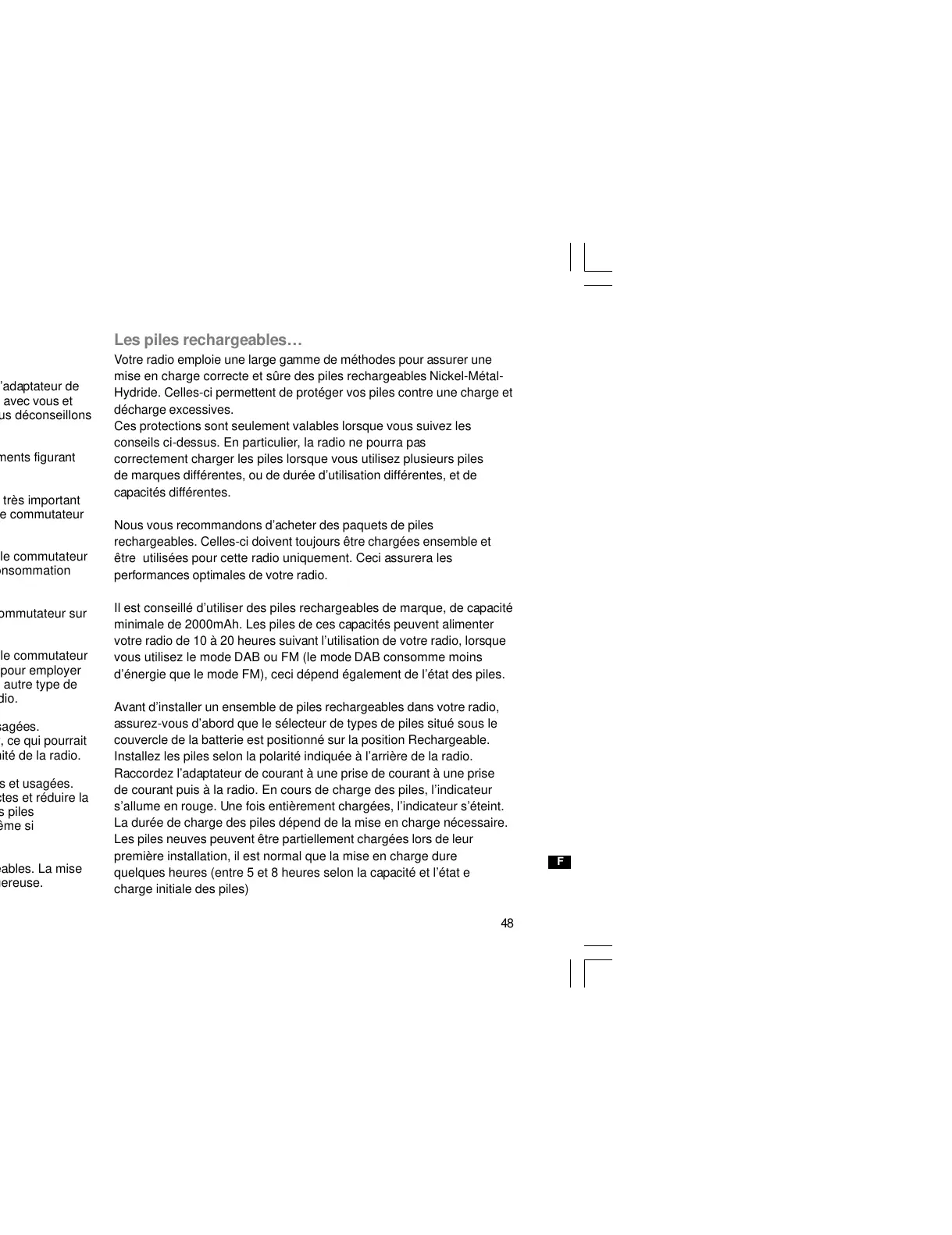 sur la position Rechargeable. Votre radio est conçue pour employer