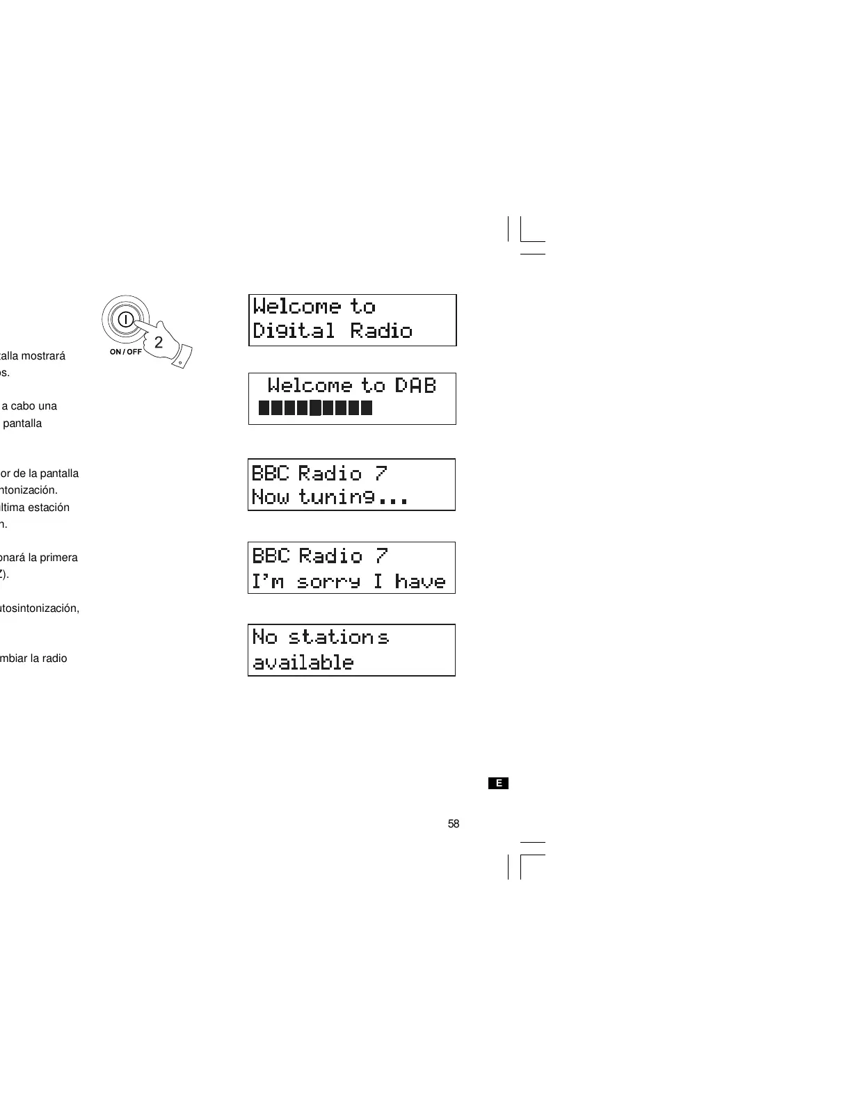 2. Pulse el botón On/Off para encender la radio. La pantalla mostrará
