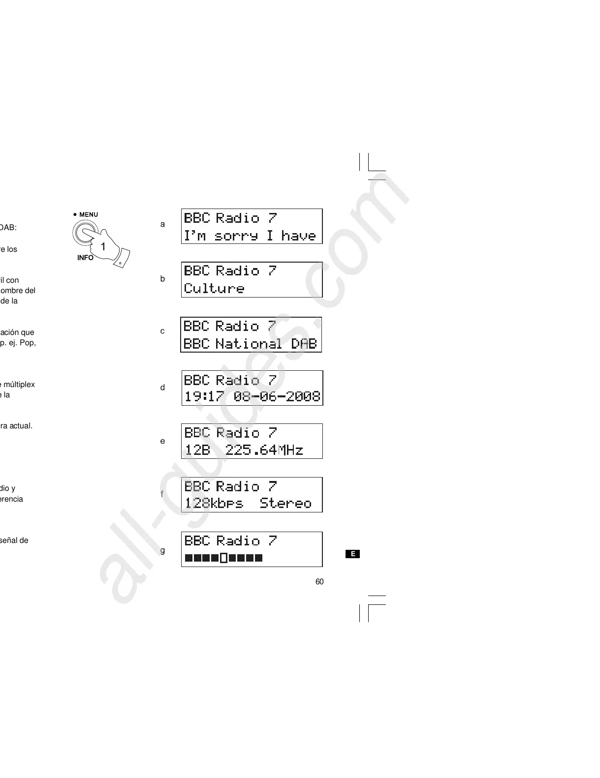 Su radio tiene siete modos de visualización de la radio DAB: