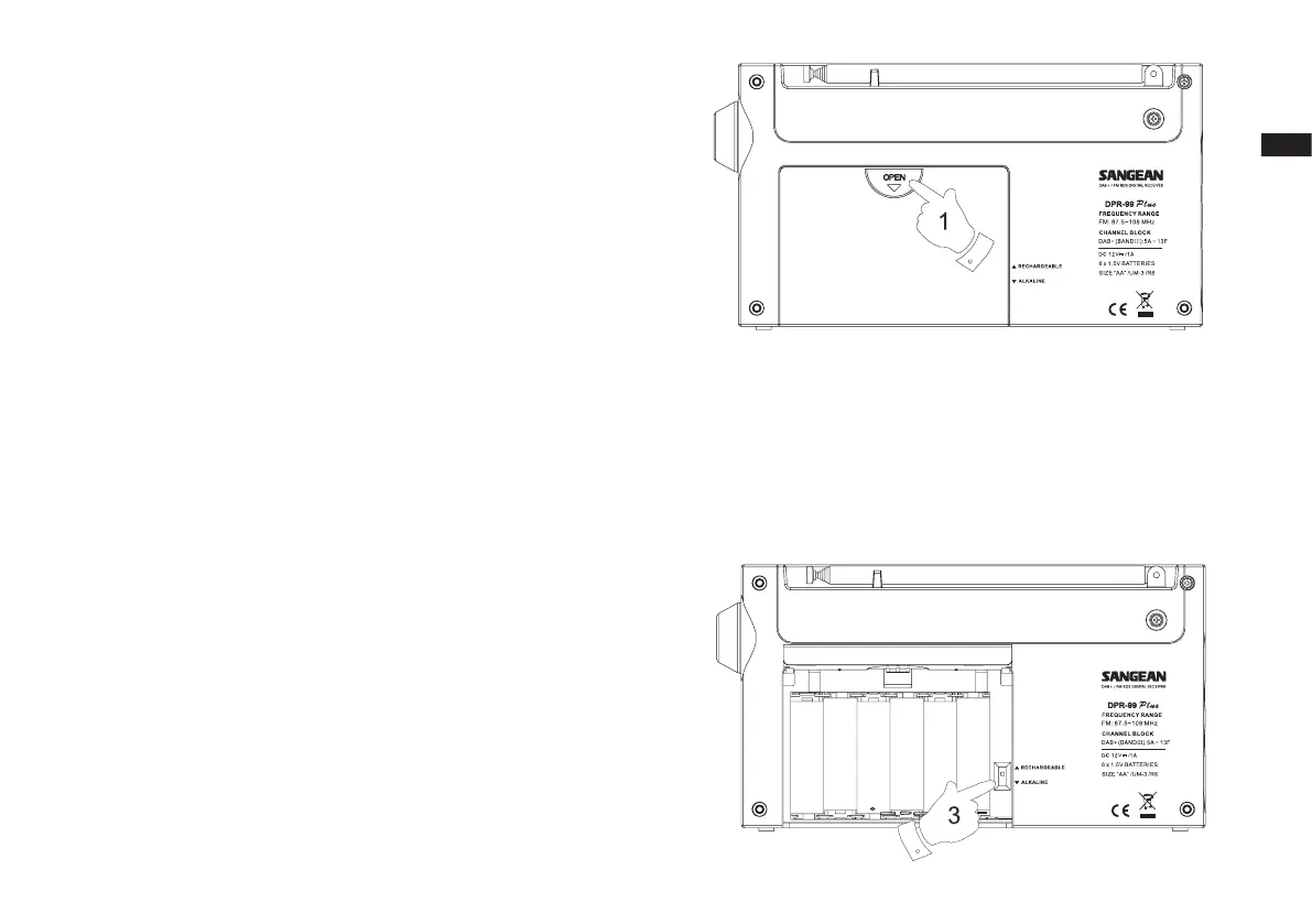 3. Deslice el interruptor de las baterías a la posición Alkaline y después