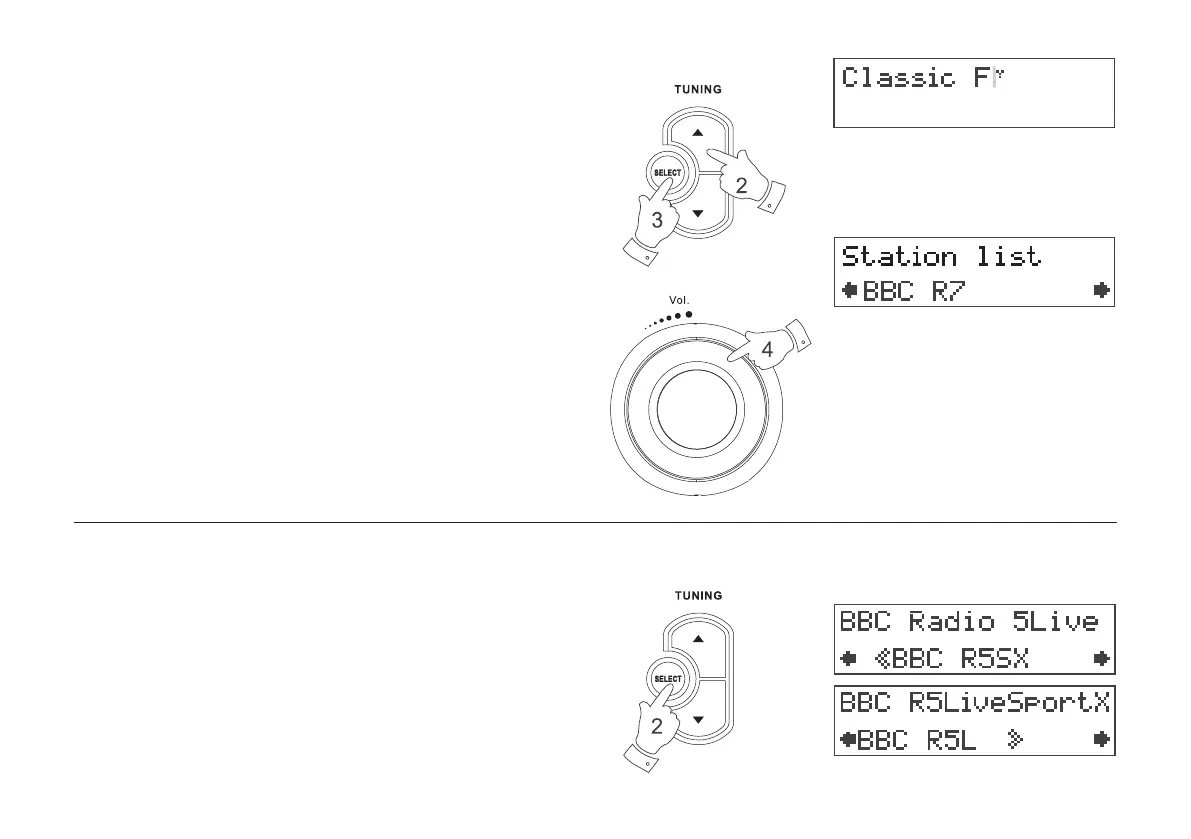 3. Pulse y suelte el botón Select para seleccionar la estación. La
