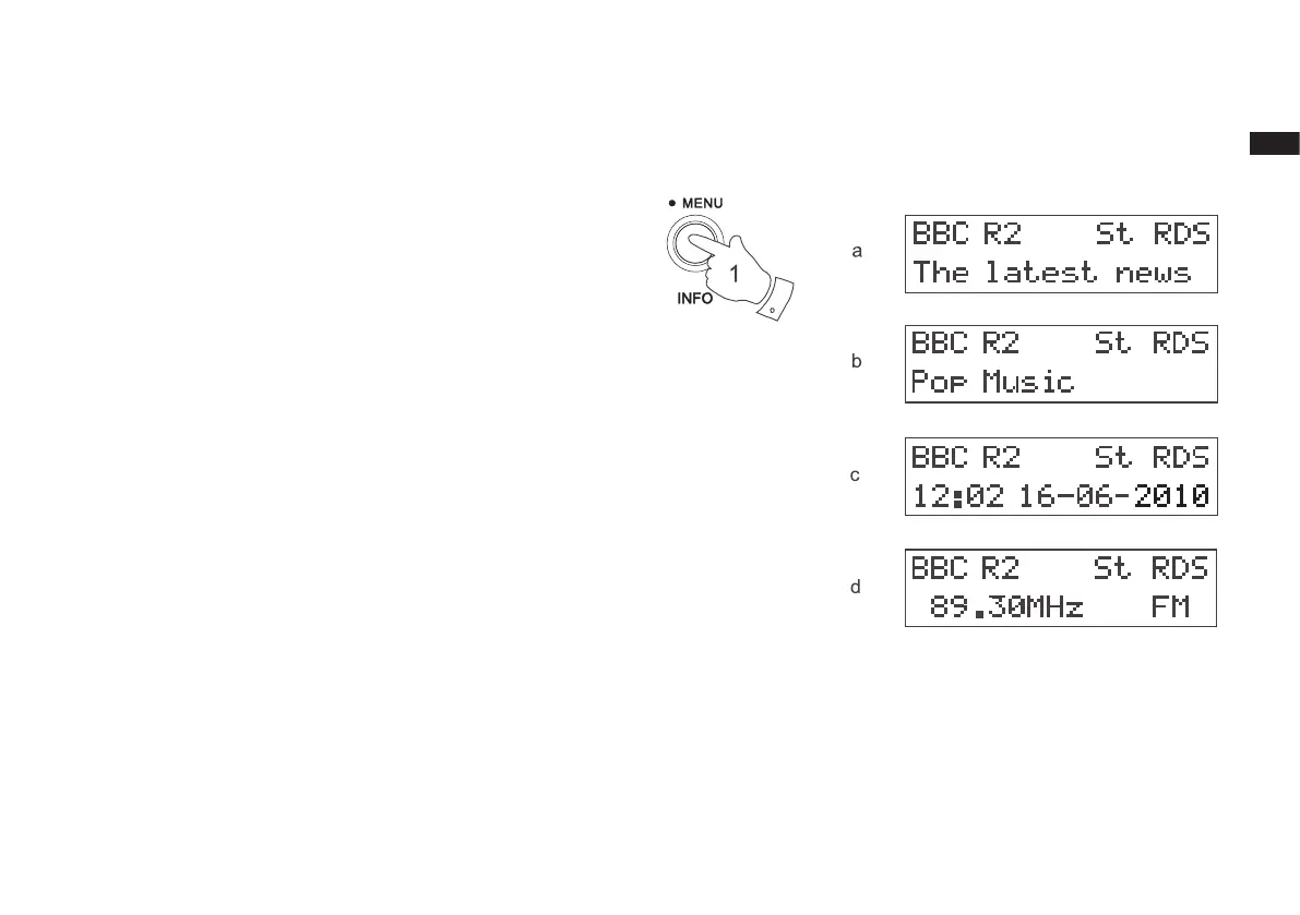En el modo FM, la línea inferior de la pantalla puede cambiarse a uno