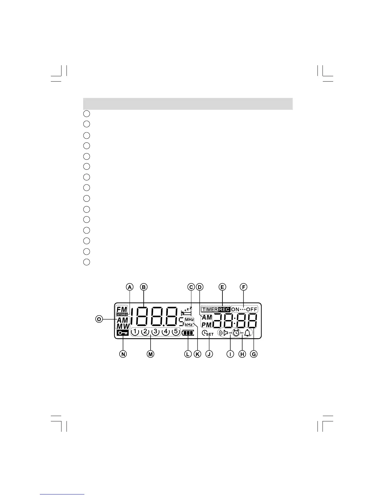 Sangean PR-D8 - Radio and Clock LCD Indicators; Function Status Symbols