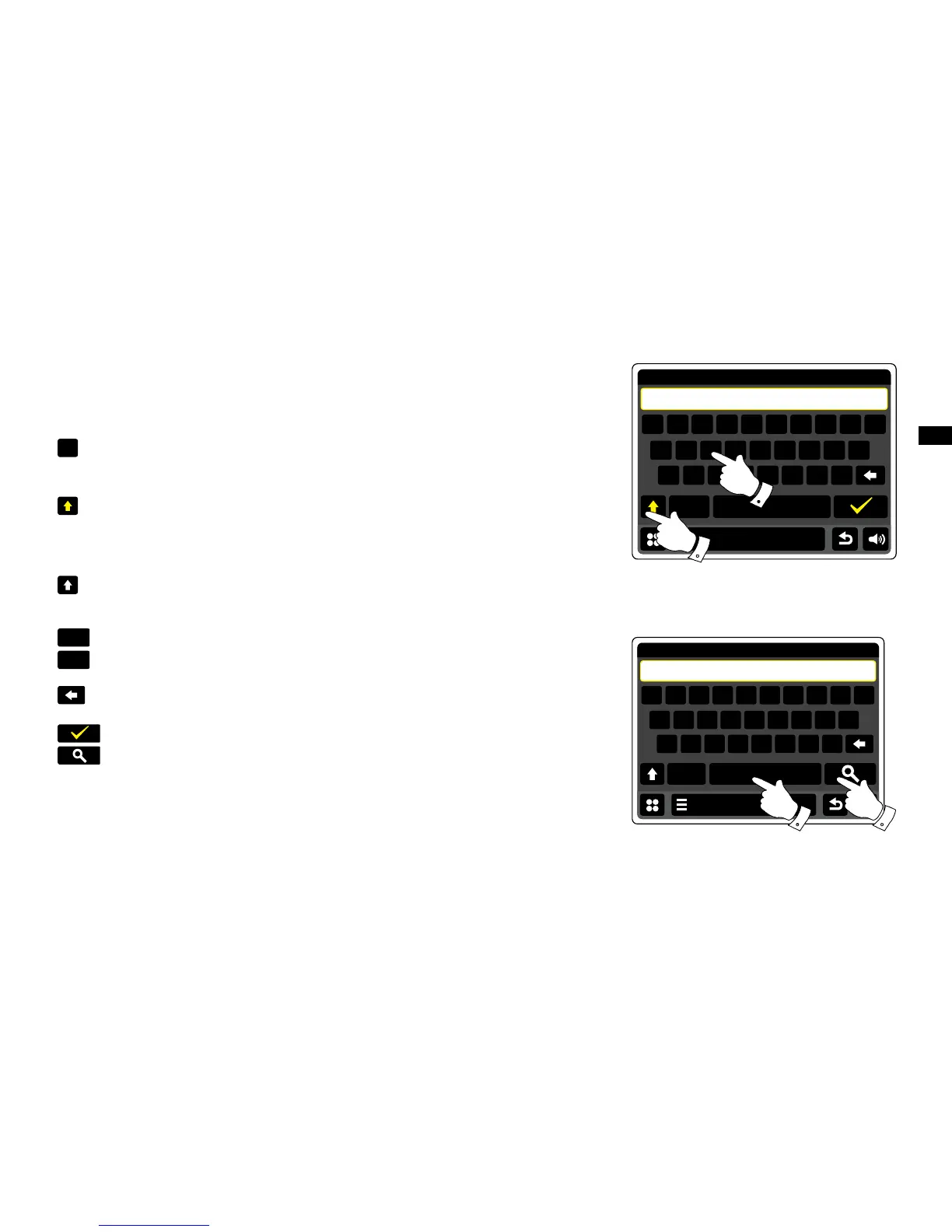 To enter UPPERCASE characters touch the arrow on the left hand side of the screen until the