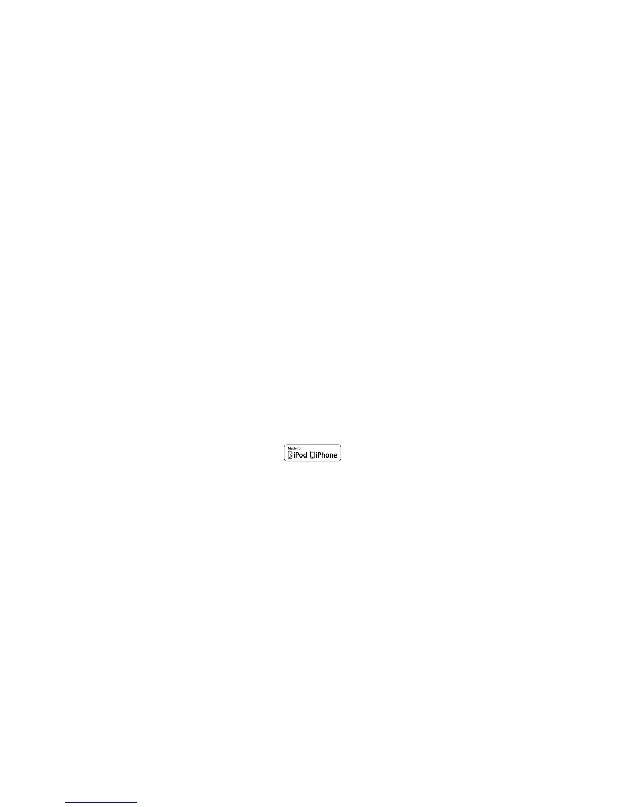 “Made for iPod” and “Made for iPhone” mean that an electronic accessory has been designed to connect specically to iPod or iPhone respectively,