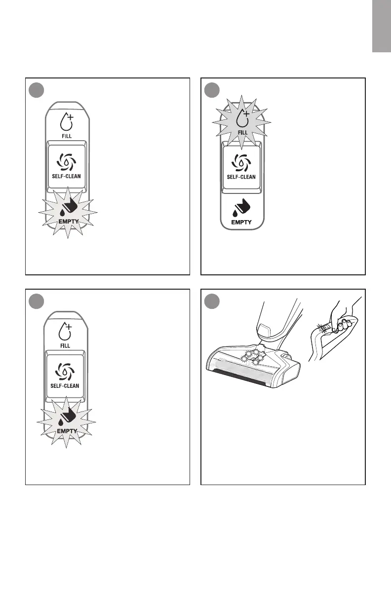Indicator lights to alert when dirty water tank is full, filter is clogged, solution tank