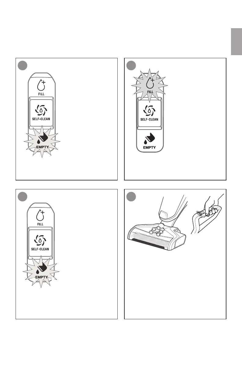 Las luces indicadoras alertarán cuando el tanque de agua sucia esté lleno, el filtro se