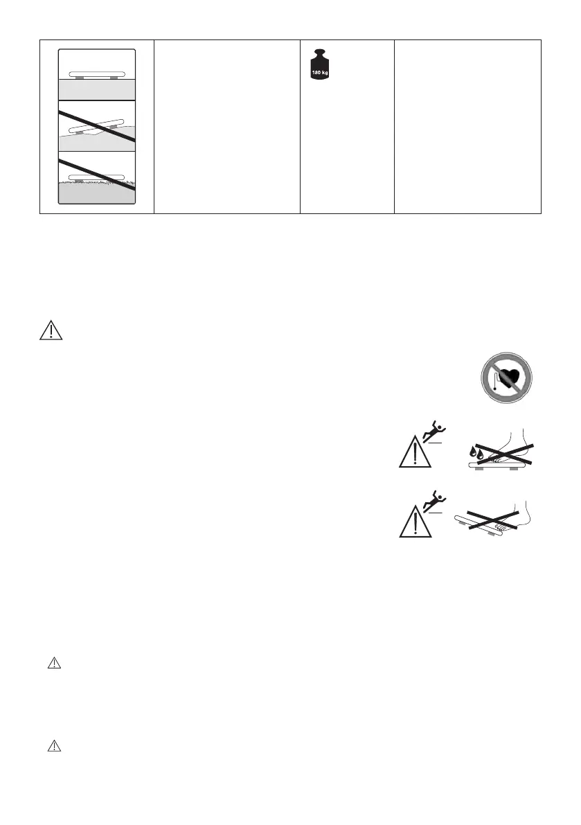 • Achtung, steigen Sie nicht mit nassen Füßen auf die Waage und
