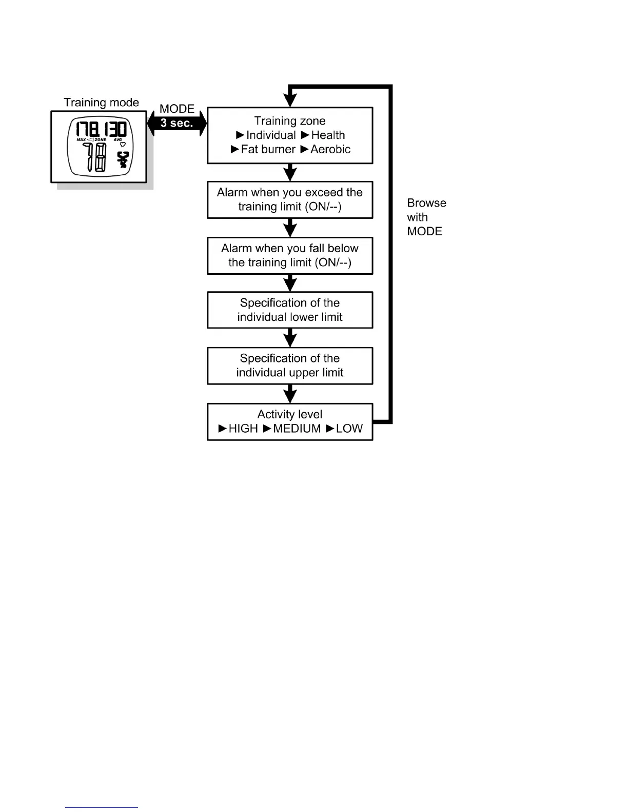 approx. 3 sec to reach the settings menu. Browse through the re-