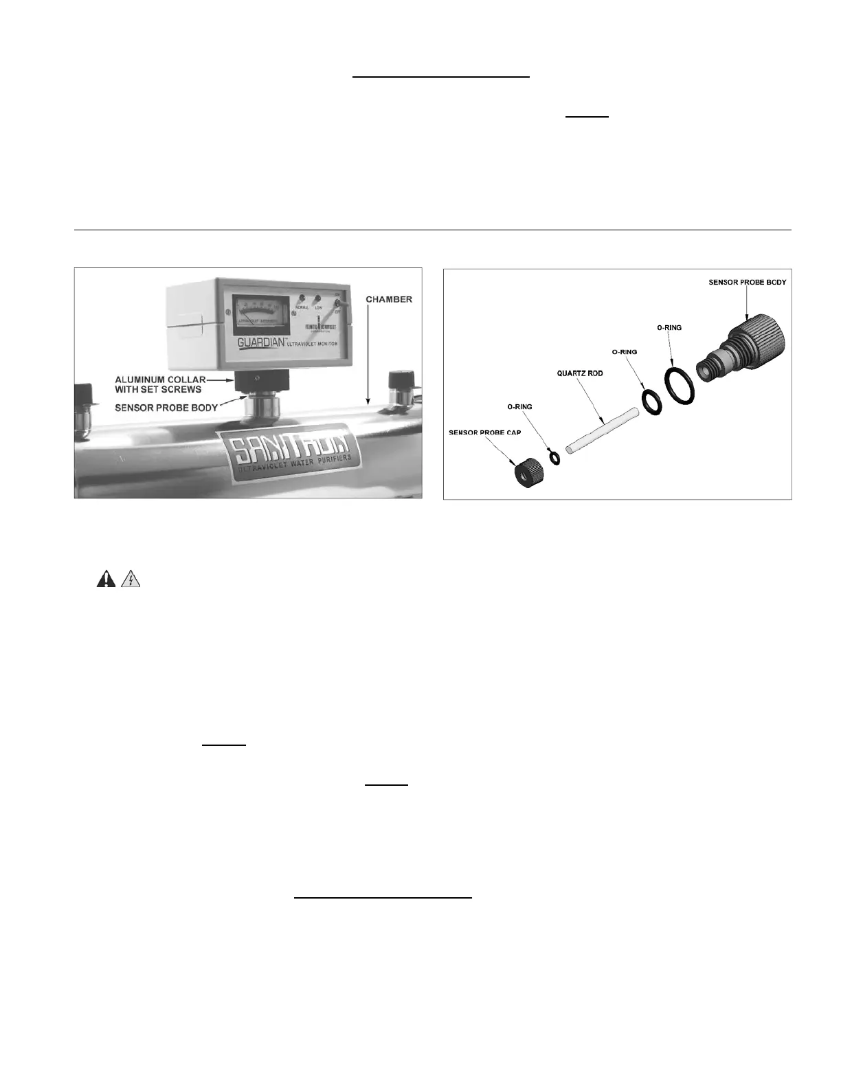 it may be necessary to clean the Ultraviolet Monitor’s sensor probe. The sensor probe body mounts in a fi tting, located in the