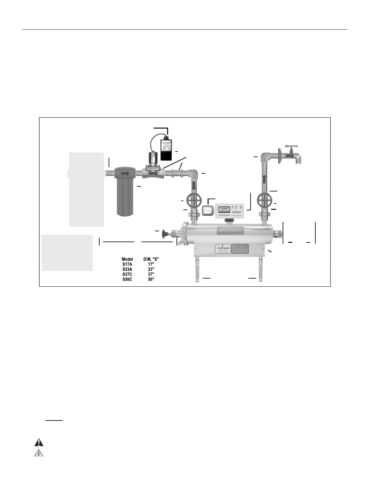 to inspect the water purifi er for damage to the quartz sleeve after it has been removed from the shipping carton. Each end