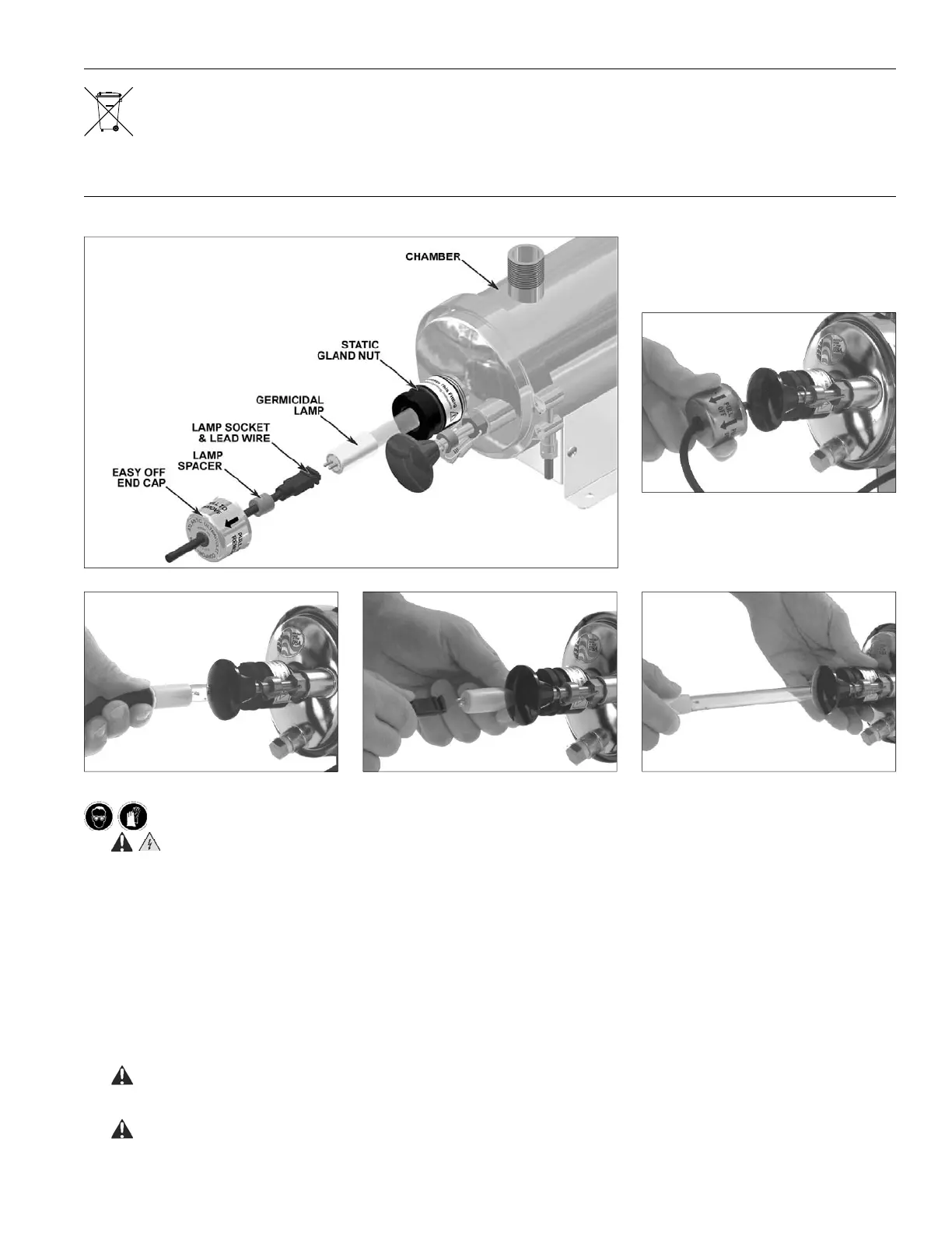 CAUTION: Lamp and quartz sleeve are easily damaged. Exercise care when handling.