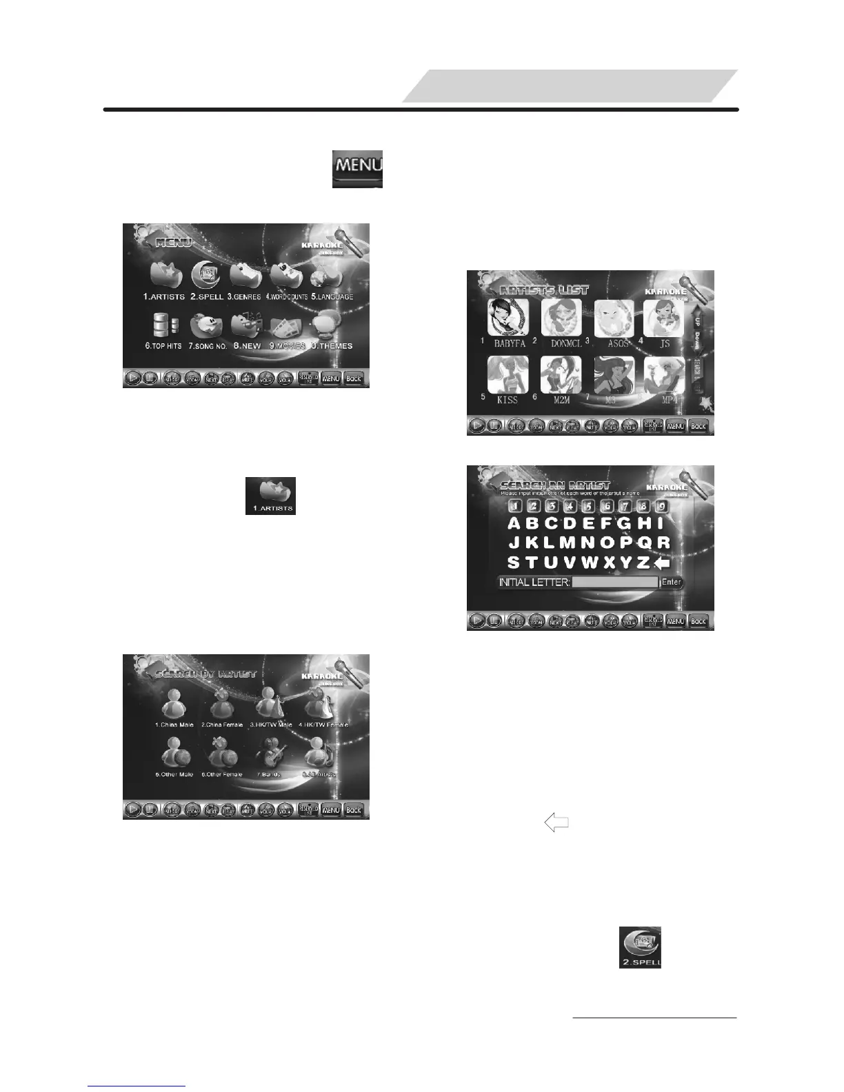 1.3 Enter “ARTISTS LIST”(See Pic.1-2)