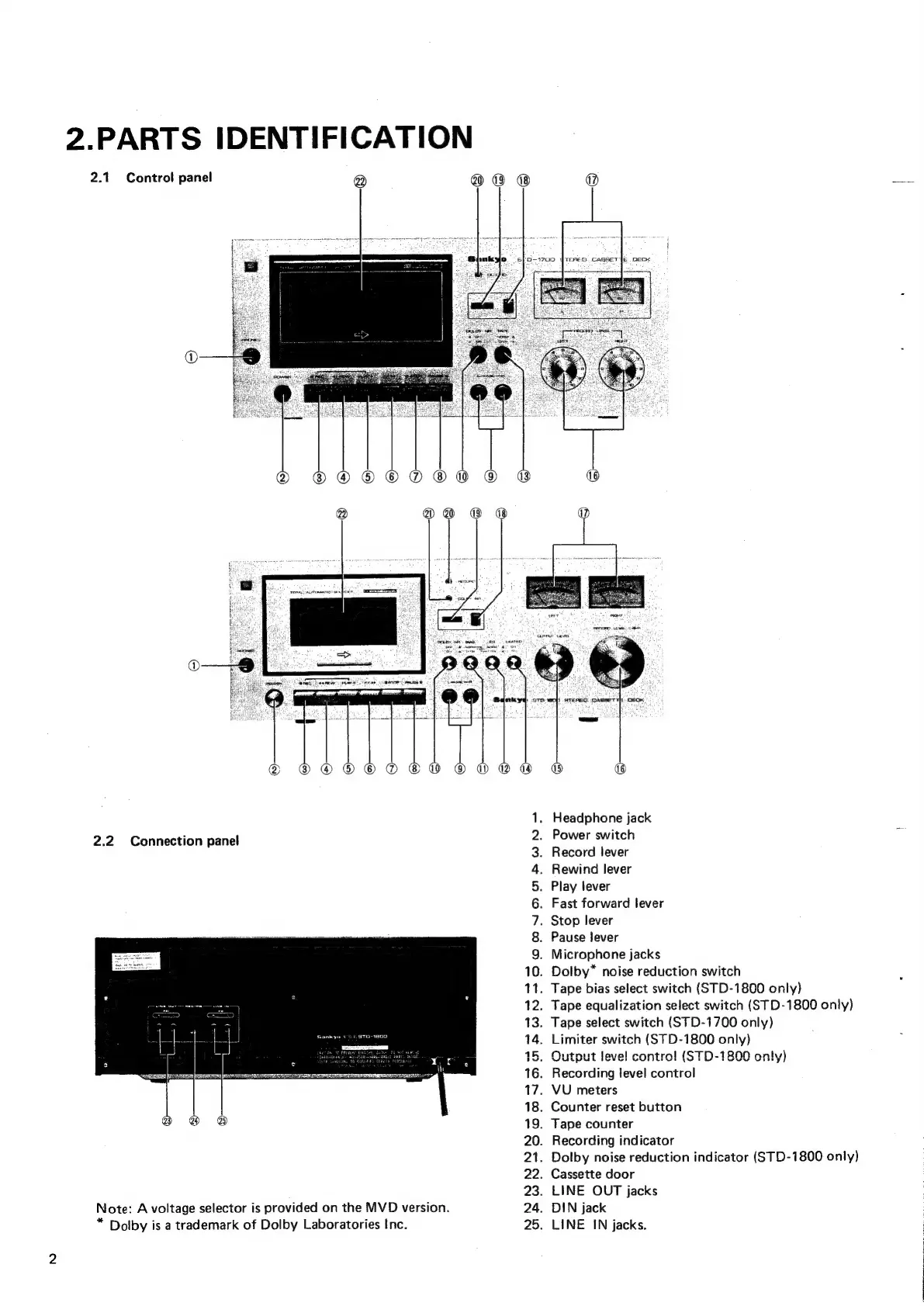 Sankyo STD-1800 - Parts Identification; Control Panels