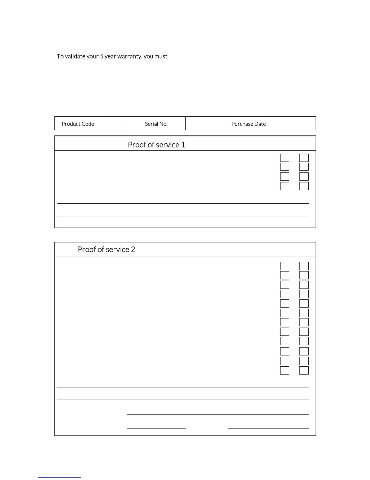 Proof of service 2 (25 hours usage after initial service or one year after purchase)