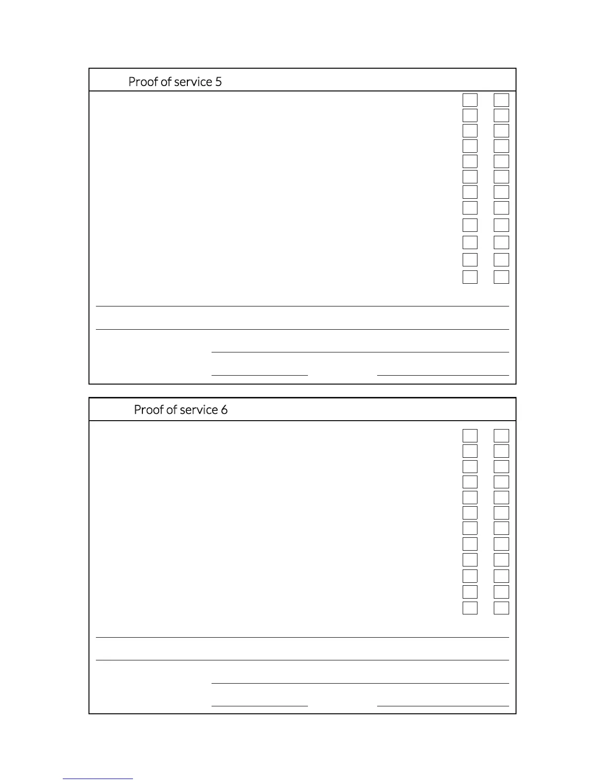 Proof of service 6 (25 hours usage after fifth service or five years after purchase)