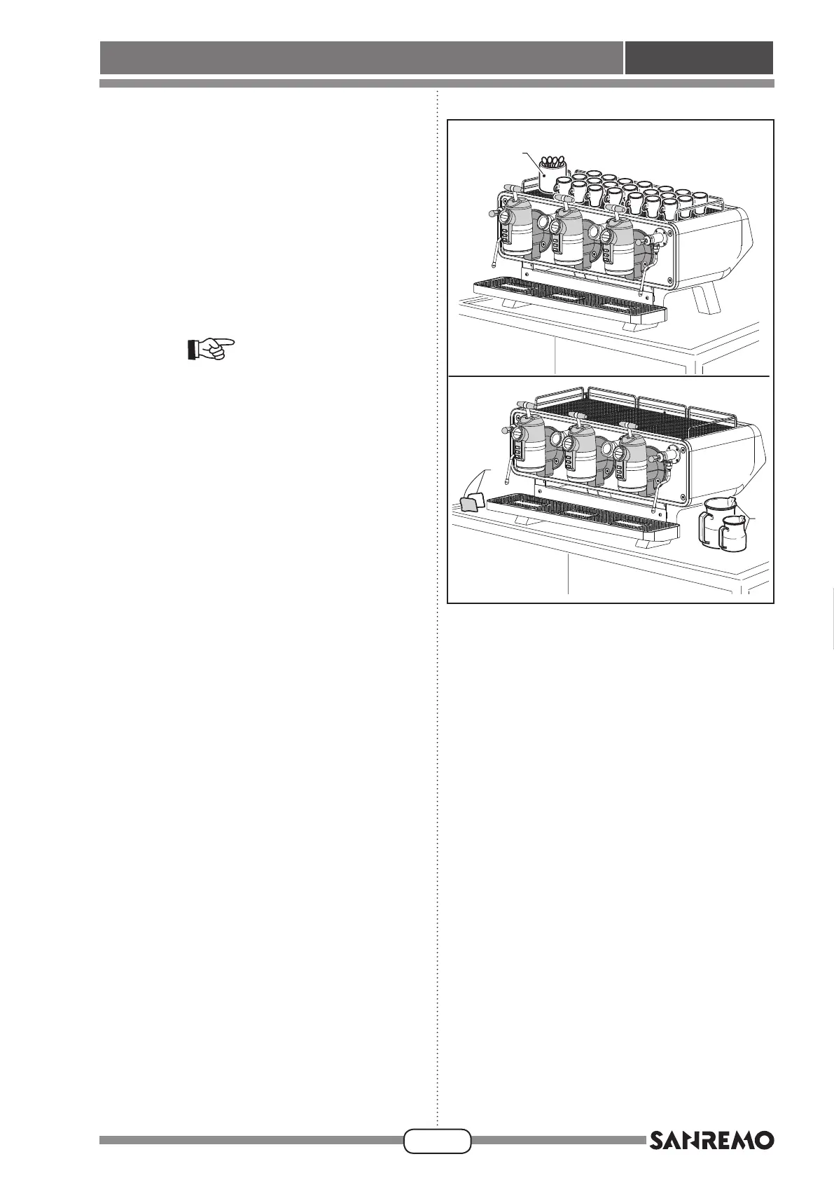 • Prepare the grinder/dosing machine and the ground