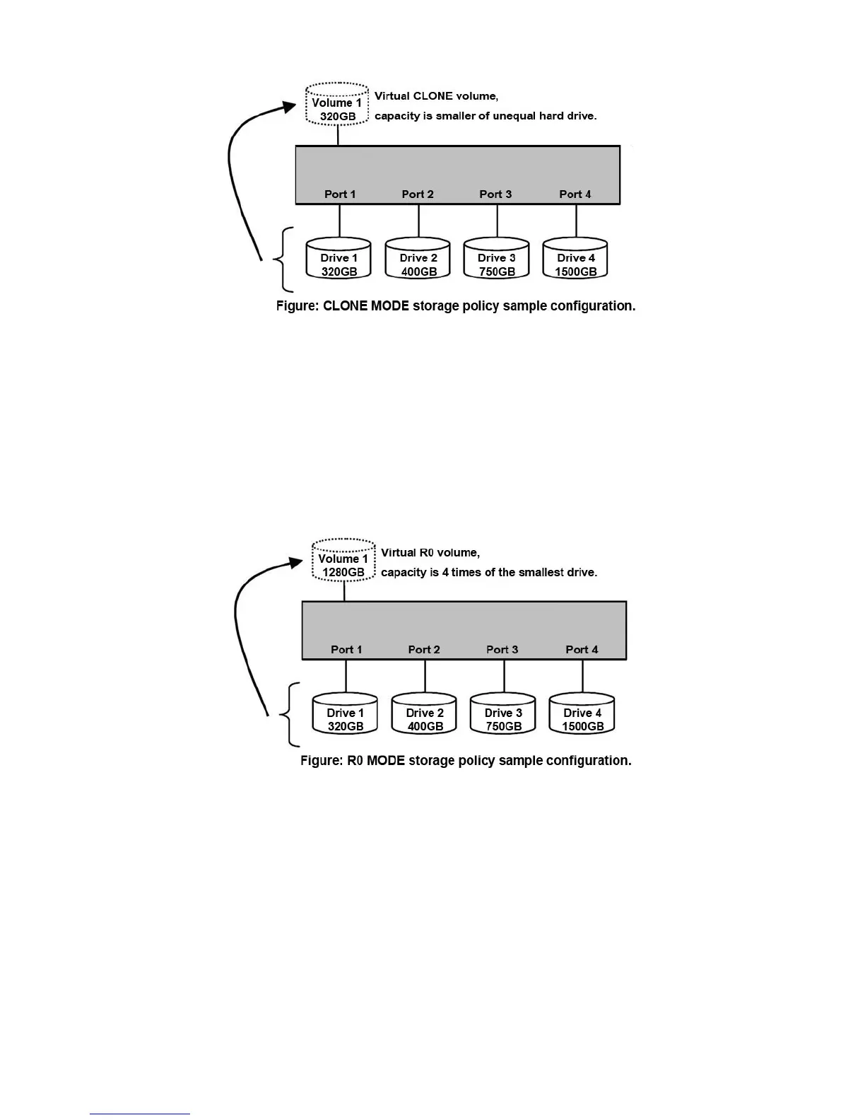 redundancy. R0 MODE storage policy accelerates hard disk drive operating speed by using many disks in parallel. Hard disk