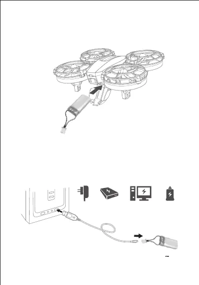 Batterie in die Drohne ein und schließen Sie dann die Abdeckung.