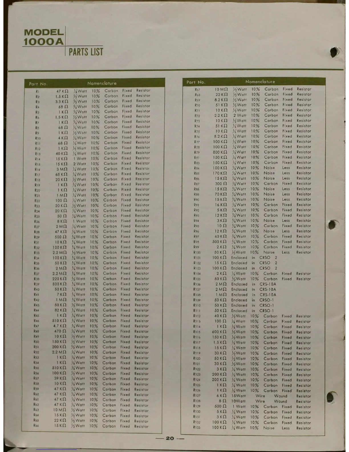 Sansui 1000A - Parts List